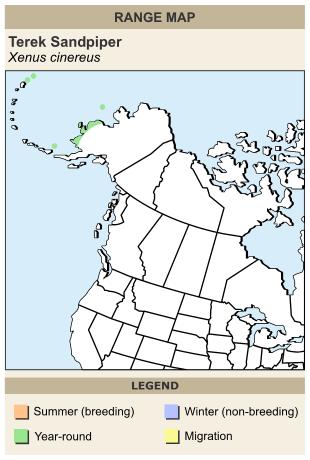 This bird breeds near water in the taiga of Finland and northern Asia, and migrate south in winter to tropical coasts in east Africa, south Asia and Australia, usually preferring muddy areas. It is a rare vagrant in western Europe. The Terek Sandpiper is one of the species to which the Agreement on the Conservation of African-Eurasian Migratory Waterbirds (AEWA) applies.